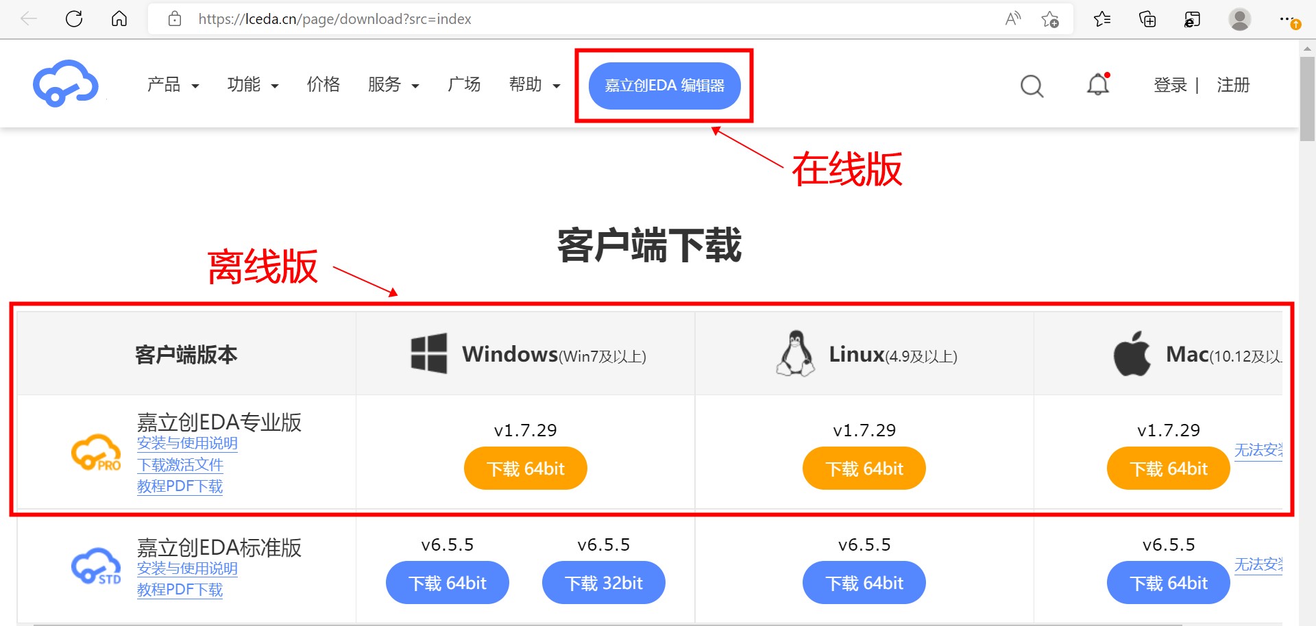 点击转到-->>https://lceda.cn/page/download?src=index进行在线编辑或者下载离线版